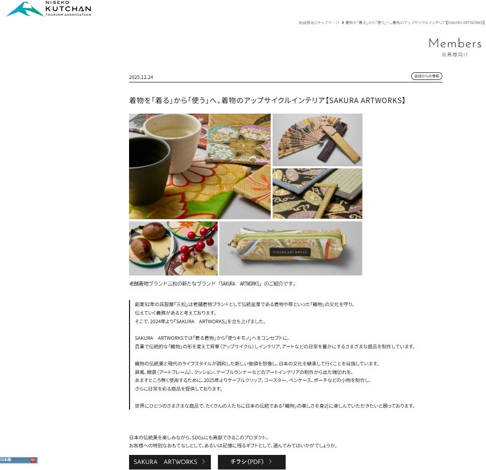 An introduction to SAKURA ARTWORKS was posted on Kutchan Town's members-only website.